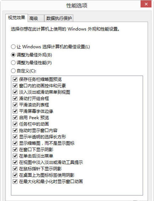 图13 设置视觉效果为最佳性能