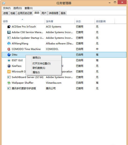 Windows8的自启动程序管理给移动到了任务管理器中,坚决的关闭一些开机自启动软件吧,最鄙视某些软件的开机自启动了,不单止张勇系统资源,还有些软件会偷偷上传数据。笔者见过最夸张的电脑开机自启动十多个第三方软件,从显示桌面到可以使用要3、4分钟时间。