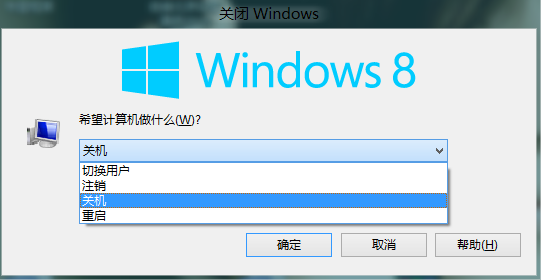 在桌面模式下,通过“Alt+F4”组合键,即可调用出传统的关闭Windows对话框,如下图,大家可以看到该窗口可进行多种操作中,包括切换用户、注销、关机、睡眠和重启,大家可以根据自己的需要进行选择。