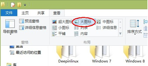 一、首先随便打开一个文件夹。点击上面菜单栏的“查看”------->大图标(注:你可以选择你喜欢的显示方式)