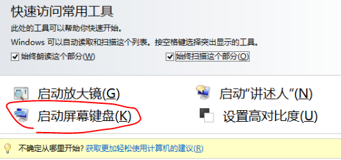 二、可以在控制面板中打开“轻松访问中心”,快捷键“win+U”,直接找到屏幕键盘(可适用于Win7)