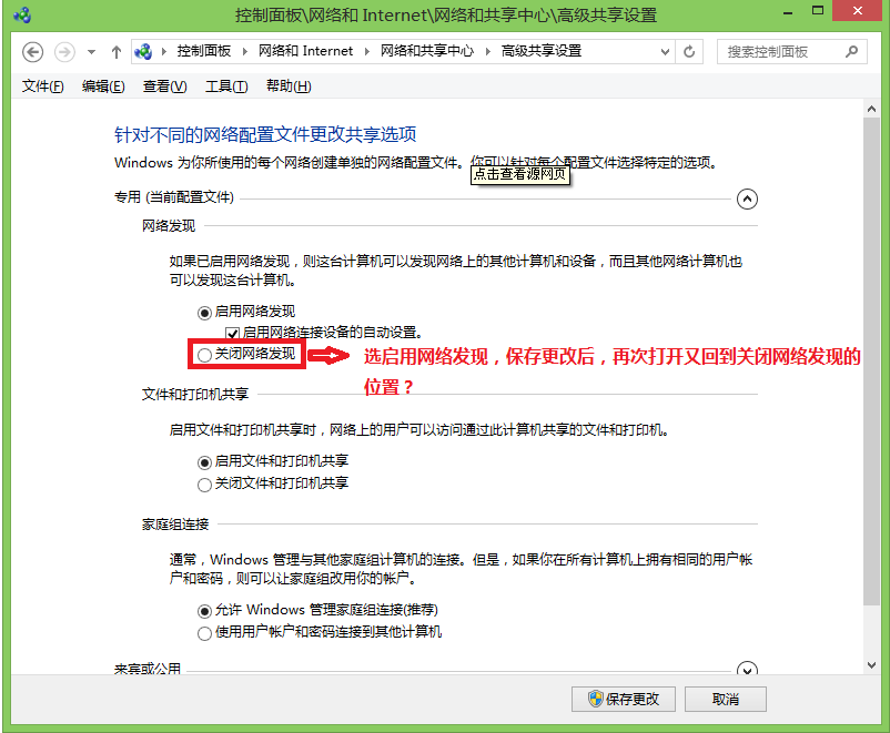 公用文件夹开启共享 1、进入win8系统传统桌面,右击开始菜单--控制面板--网络和Internet--网络和共享中心-- 更改高级共享设置。 2、在办公室等场所的工作网络等一般属于专...