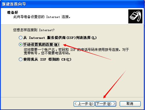 然后选择 手动设置我的连接