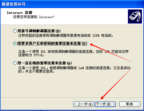 如何在Windos XP 下创建一个宽带连接
