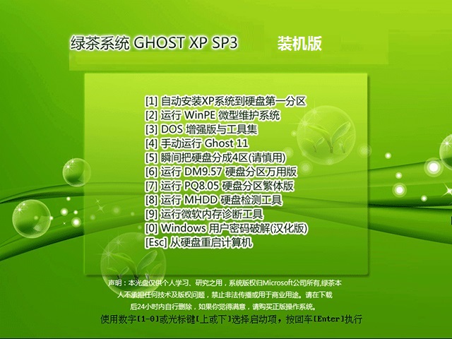 Ghost XP SP3绿茶系统装机版下载v2015新春版 Ghost XP SP3绿茶系统装机版下载v2015新春版 一、Ghost XP SP3绿茶系统装机版下载v2015新春版版本特点 1、系统安装全过程约5分钟,部分机子可达3分钟...