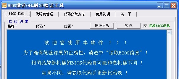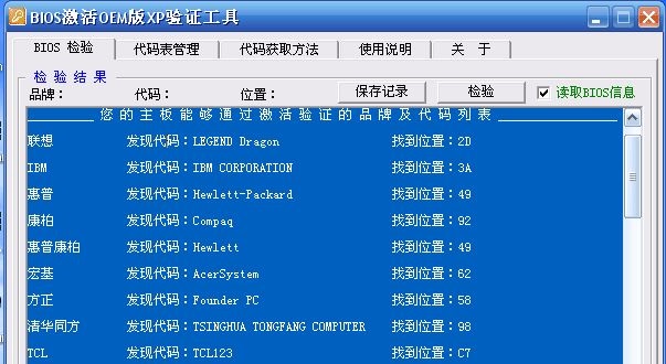 我的检测程序根据OEM_XP代码表,从bios.mem文件的指定范围内搜索特定的代码,将结果显示出来。这样