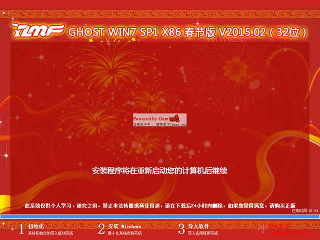 * 源安装盘采用微软官方windows 7 Ultimate with Service Pack 1 (x86) - DVD (Chinese-Simplified) 操作系统,并进行永久激活,集成系统补丁至2015.02(可通过微软漏洞扫描)