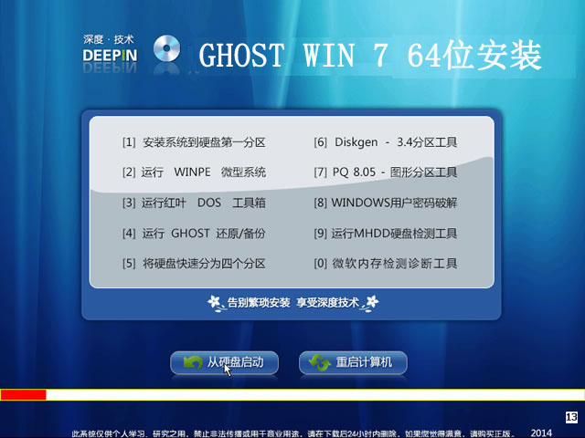 深度deepin ghost win7 64位旗舰装机版下载V2014F