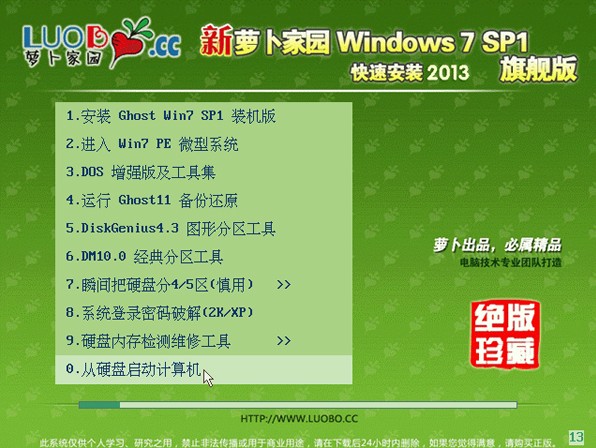 新萝卜家园ghost win7 64位旗舰装机版下载v10.0
