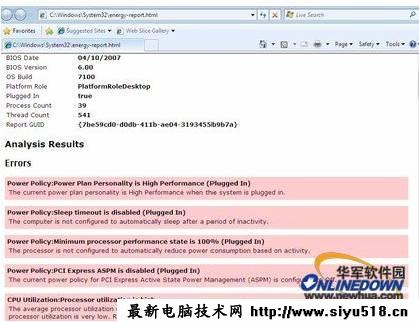 此后,windows 7将会对您的系统进行将近60秒钟的分析,并且为您提供一份报告,其中包括详细说明如何去延长您的电池寿命的