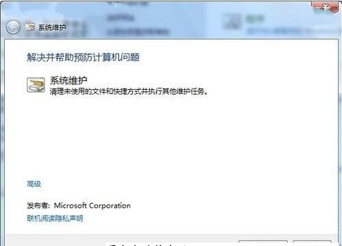 进行系统维护时,windows7可以检测和修复快捷方式、磁盘空间、系统时间设置、桌面图标、磁盘卷等方面的潜在问题,并可生成系统维护报告,方便用户查看。
