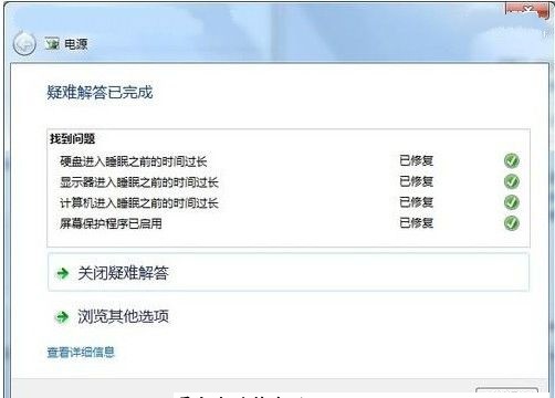 在操作时,可以检测硬盘进入睡眠之前的时间过长、屏幕保护程序启用、电源计划设为高性能、最小处理器状态设置过高、显示器亮度设置过高等方面的问题,并可自动应用修复程序进行修复。