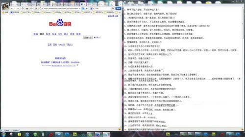 需要分平时可用鼠标拖动窗口至桌面最左边,当出现上图画面时就可以松开鼠标,窗口会自动占据左半边屏幕。