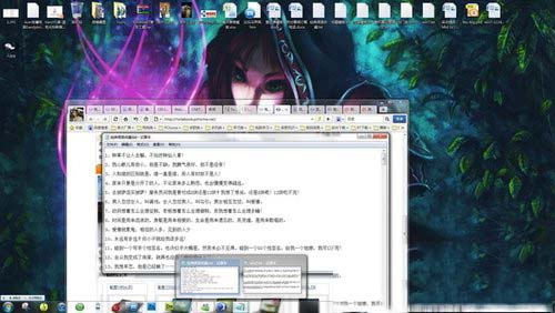 windows7的任务栏有了很大改进,这一点用过Win7的朋友都深有体会,这其中除了绚丽的玻璃特效和整合同类任务的功能外,这个更加直观预览任务栏的功能相当实用,如下图最下方的两个小窗口,直观的界面可让你快速找到想要的那个小窗。