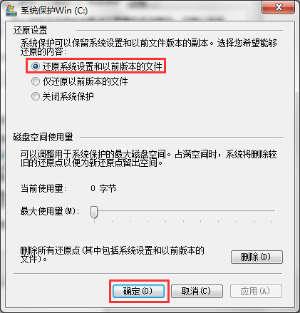 四、然后在弹出的的窗口中点击“还原系统设置和以前版本的文件”,在点击“确定”如下图所示: