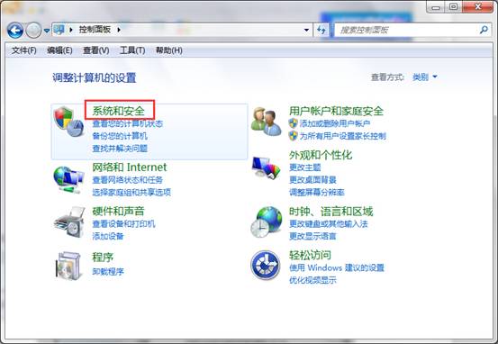 一、点击“开始”→“控制面板”,然后点击“系统和安全”,如下图所示: