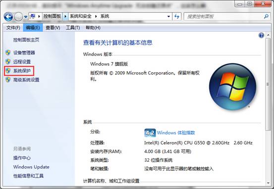 二、接着点击“系统”,然后在弹出的窗口中选择“系统保护”选项,如下图所示:
