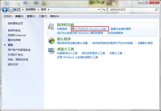 二、接着在打开的窗口中,点击“打开或关闭Windows 功能”,如下图所示: