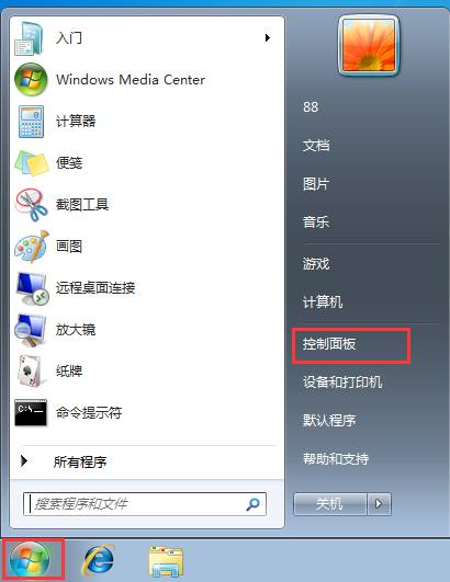 首先我们在桌面上点击开始菜单,然后找到控制面板,然后进入,如图所示: