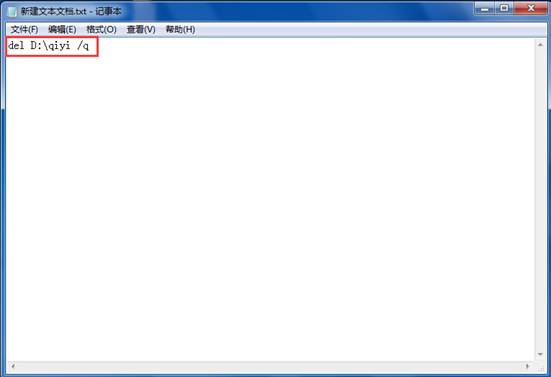 在文本文档里面输入字符“del 文件夹路径 /q”(这里的路径选择自己需要清理额文件夹),如图所示: