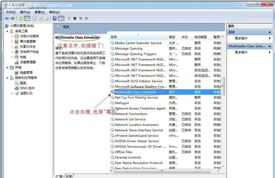 找到"Multimedia Class Scheduler"此服务,选择"属性"