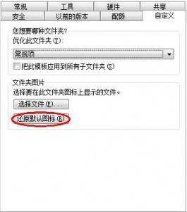 打开我的电脑(Win7是"计算机")----->在磁盘上面点击鼠标右键----->属性----换到"自定义"----->还原默认图标