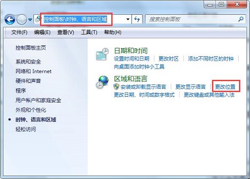 控制面板,点击打开时钟、语言和区域(若查看方式为大小图标是语言和区域),再选择位置(更改位置),先将当前位置设置美国,应用--确定。重启一下计算机,再回到这里设置为中国,再重启一下计算机,这样系统就不会出现乱码了。