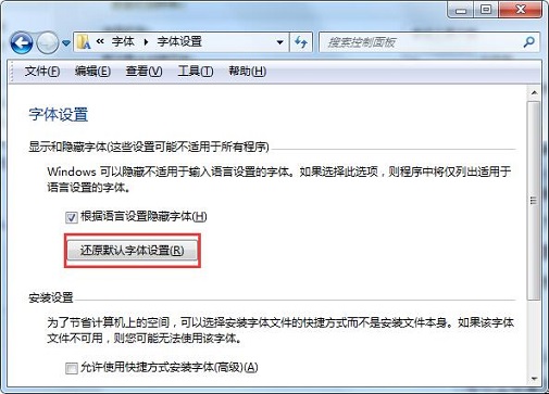 打开控制面板--外观和主题--字体--更改字体设置,打开如下界面
