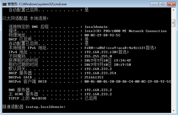 2、执行“ipconfig /all”命令,在弹出的窗口中,将网卡的MAC地址、IP地址记录下来; 然后将指定IP地址与对应的MAC地址,绑定在一起,以后即使有人在你的计算机中,修改了IP地址,他也无法通过代理服务器,进行网络连接。