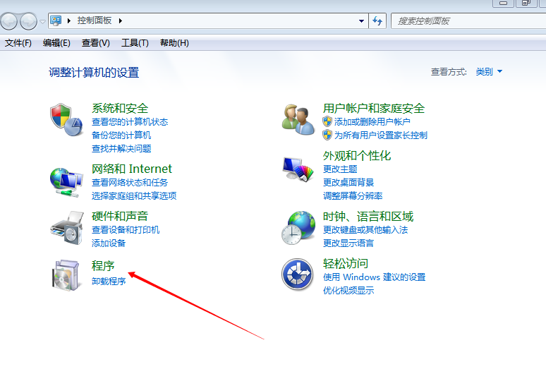 1、打开"控制面板",找到程序和功能,然后点击左上方的