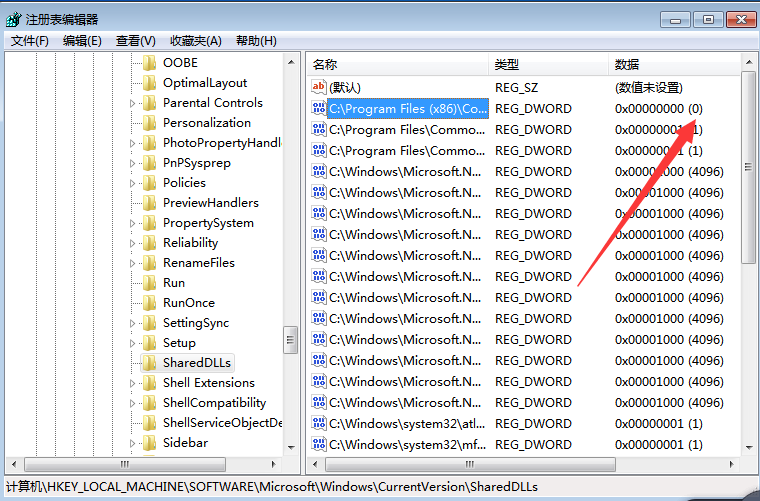 然后选择数据为“0”的这一项,记录下这一项的路径后,直接右键删除此项。如下图所示: