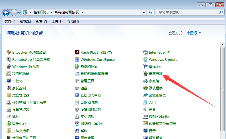 1、首先我们从“开始菜单”打开“控制面板”,然后将“查看方式”修改为“大图标”,接着打开“电源选项”;