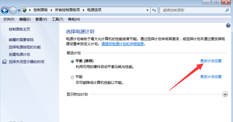 2、进入“电源选项”后,依次打开“更改计划设置--更改高级电源设置”;