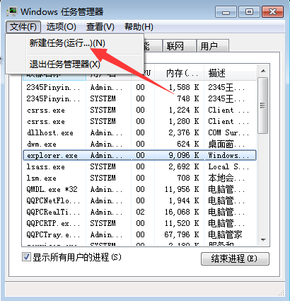 4、返回桌面,按“Ctrl + Shift + Esc”快捷键打开“任务管理器”,在进程选项卡中找到“explorer.exe”并右键打开菜单选择“结束进程”,之后弹出提示框再点击一次“结束进程”;
