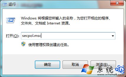 3、然后打开“开始菜单”,打开“运行”窗口,输入“secpol.msc”并点击确定打开“本地安全设置”;