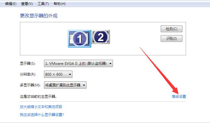 3、最后打开了屏幕分辨率窗口了然后我们可以在上面设置分辨率大小不过现在我们说的不是分辨率的问题继续点击打开【高级设置】按钮。