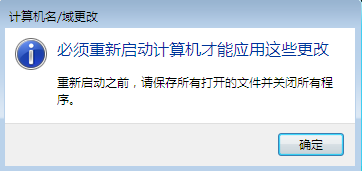 上面就是Win7系统局域网计算机名称更改的方法了,在重启的电脑的时候,要记住把没有保存的文件文档,进行手动保存后,在点击确定,电脑将重新启动,启动完后,这是你会看到你的计算机名称已经修改成功了。