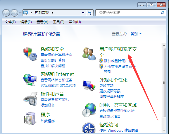 1、首先打开控制面板,点击“用户控制和家庭安全”。