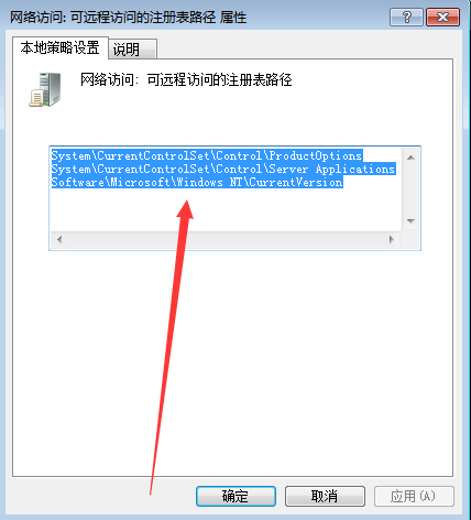 5、用同样的方法打开“网络访问:可远程访问的注册表路径和子路径”,并删除已设置的路径即可。