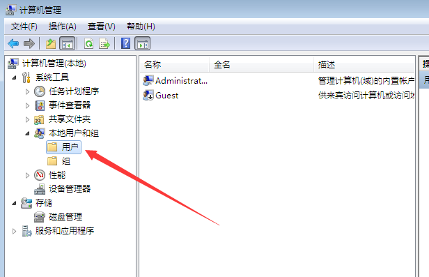 2、在管理界面点击计算机管理(本地) - 系统工具 - 本地用户和组 - 用户;
