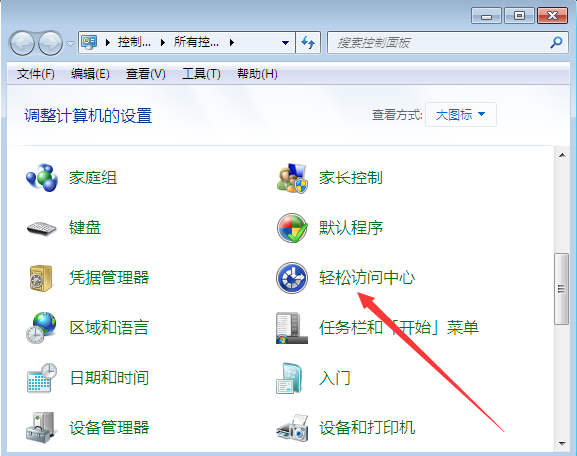 1、首先打开控制面板,将查看方式改为“大图标”;