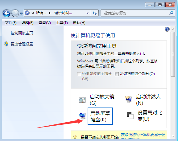 3、在轻松访问中心中点击“启动屏幕键盘”即可。