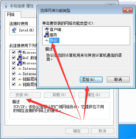 Win7系统不小心将TCP/IP协议卸载如何重新安装的方法