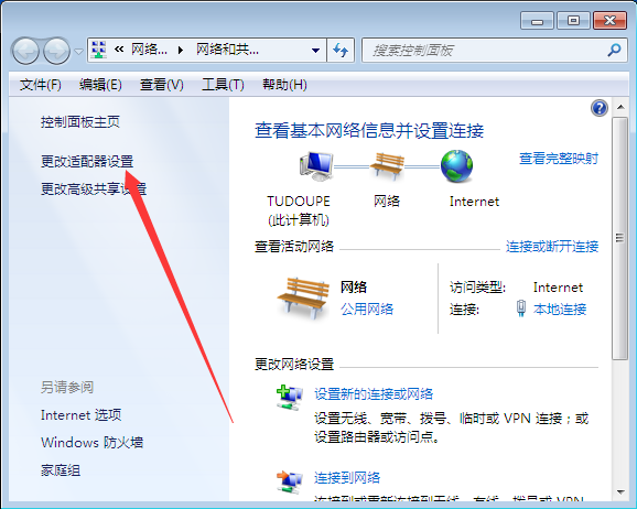 2、打开后找到里面的“更改适配器设置”;