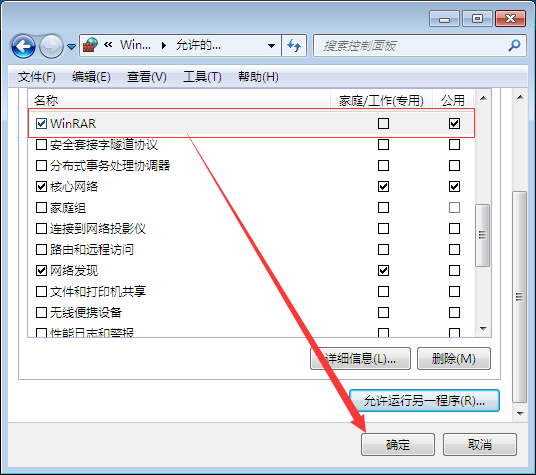 6、在家庭/工作(专用)和公用前面都打上勾,也可以按自己的需要去改变。最后保存方可。