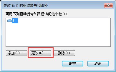 4、我们看到E分区号,选择”更改";
