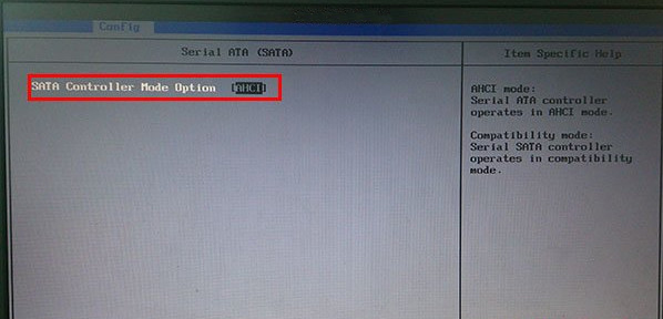 4、模式切换后我们可以看到“SATA comtroller mode option”后面的括号就变更为“ahci”了,如下图所示: