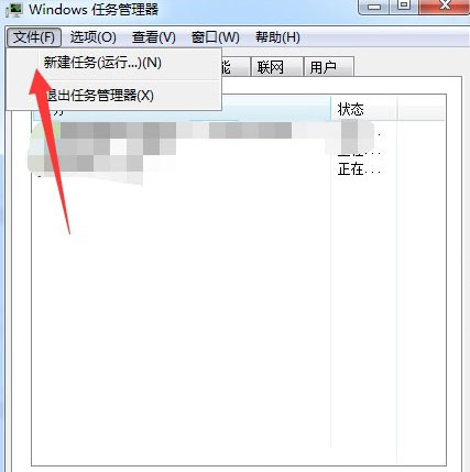 2、进入任务管理器界面,点击上方的【文件】选择【新建任务】。如图所示: