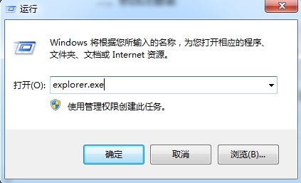 3、在弹出的任务对话框输入explorer.exe命令,点击确定,重新启动资源管理器。如图所示: