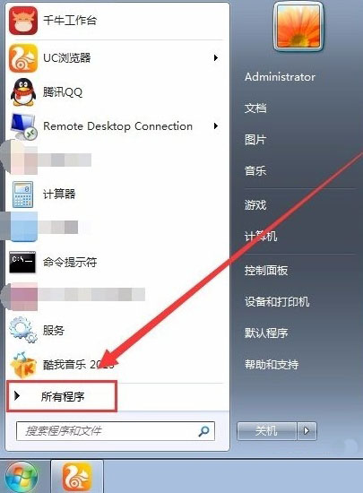 1、点击电脑左下角的开始图标,然后在弹出的选项中,我们点击“所有程序”,如图: